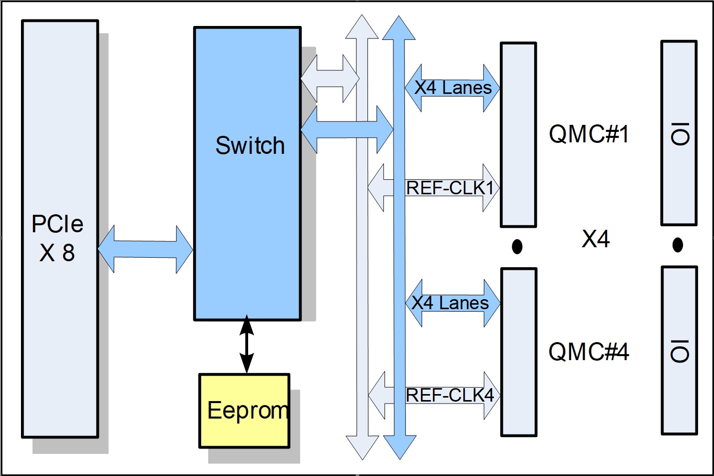 - Provides up to PCIe Gen2 x4 lanes per QMC site